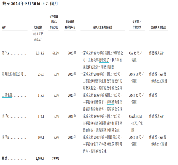 但关联交易依然不可避免,如2024年前三个季度,歌尔微第二大客户就是歌尔股份,营收占比7.8%,原因即是歌尔股份也需要采购传感器用于其他业务的生产。