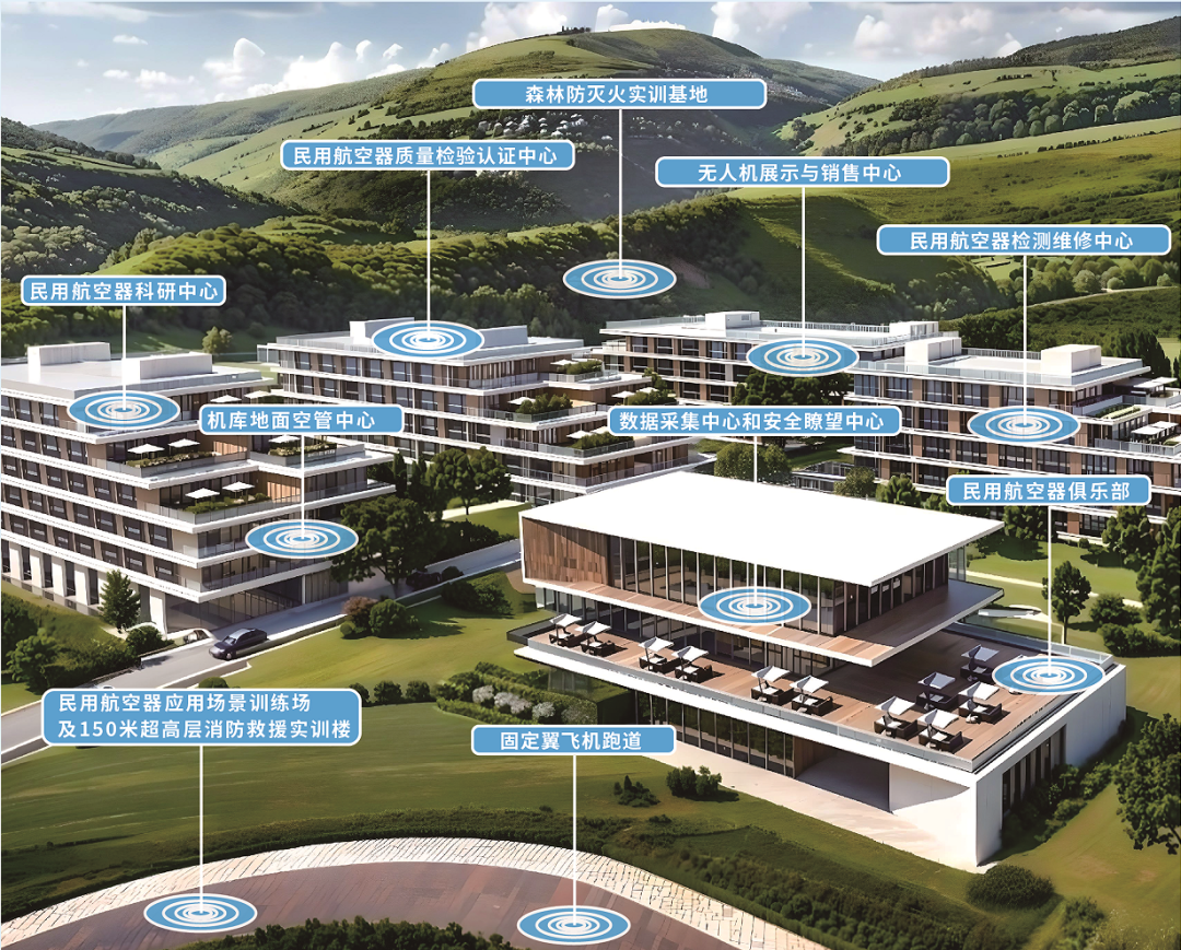 国安达始终秉持“政产学研用”五位一体的经营理念,在平和县打造国内最齐全的智能化、信息化、数字化、系统化的低空经济产业链,率先建设省级航天航空科普研学基地,以点带面打造平和“科技+服务+研学+文旅”示范阵地,辐射全省及周边省市,为漳州市的科技创新注入强大动能。同时,深入开展民用航空器设计研发、CAAC执照培训、航天航空科普研学、专业技能培训、民用航空器商务服务、品牌民用航空器代理销售、平急任务调派服务、工业无人机和专业装备定制销售等相关业务,计划建设民用航空器科研中心、固定翼飞机跑道、民用航空器质量检验认证中心、机库地面空管中心、民用航空器检测维修中心、民用航空器应用场景训练场及150米超高层消防救援实训楼、数据采集中心和安全瞭望中心、森林防灭火实训基地、无人机展示与销售中心、民用航空器俱乐部,定期举办无人机竞技赛事和低空科技展会等活动。