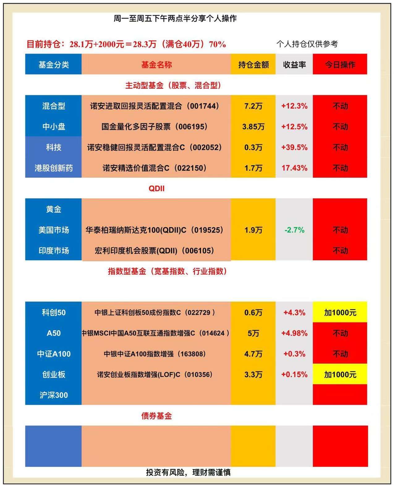 $$诺安创业板指数增强(LOF)C(OTCFUND|010356)$$ 加1000元