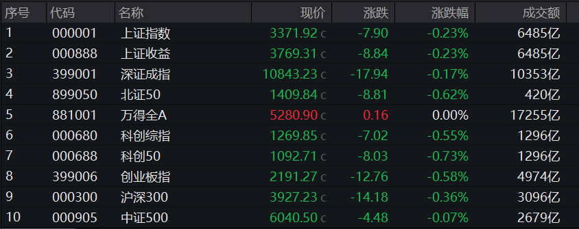 2025年3月12日,A股市场整体表现较为平稳,盘中一度有较多热点出现,但午后冲高回落使得市场情绪有所降温。上证指数收盘报3,371.92点,下跌0.23%;深证成指收盘报10,843.23元,下跌0.17%;创业板指收盘报2,191.27点,下跌0.58%。