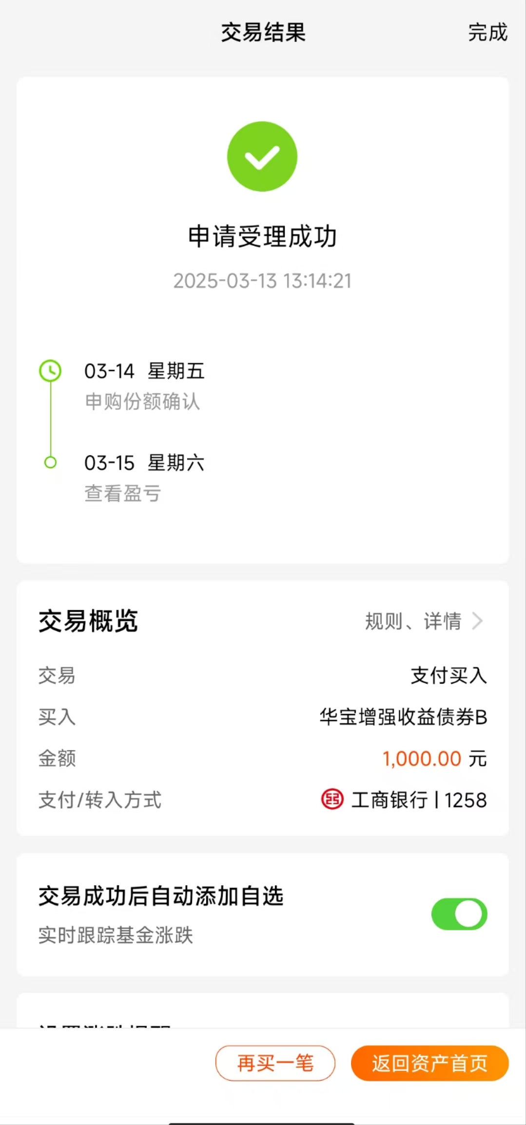 1、$华宝增强收益债券B(OTCFUND|240013)$+1000元