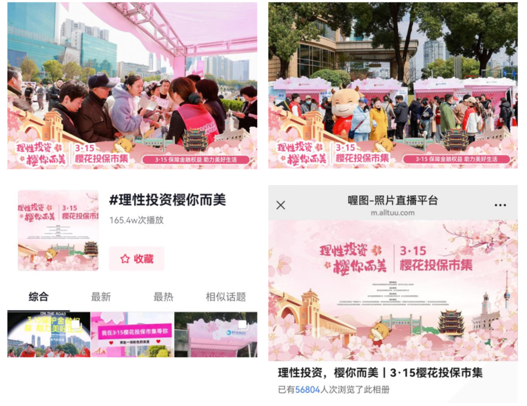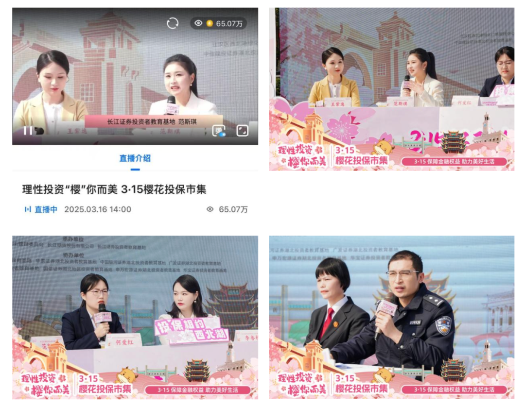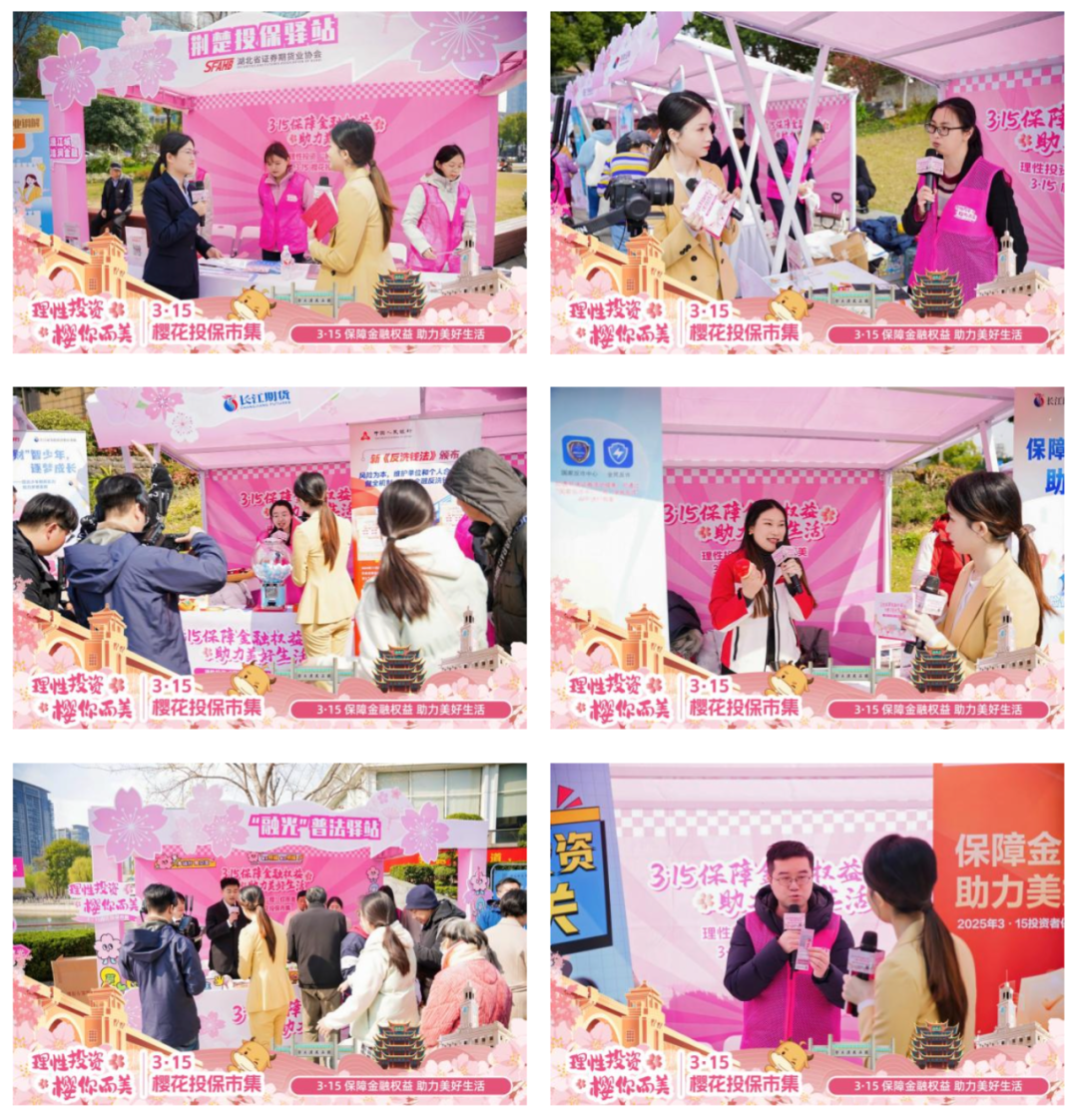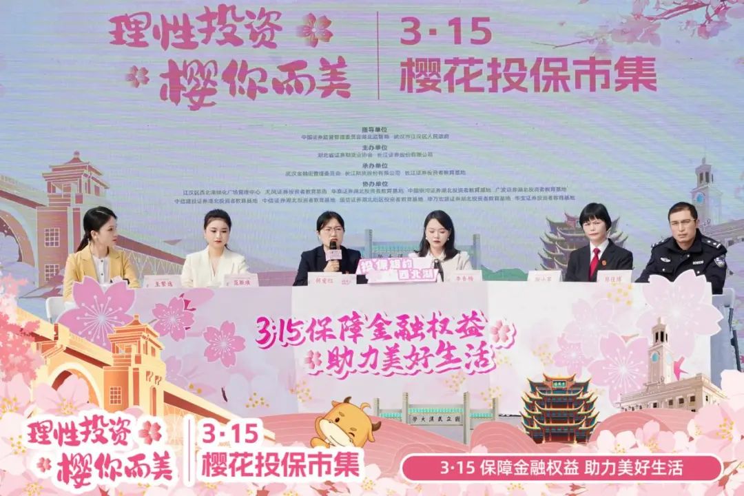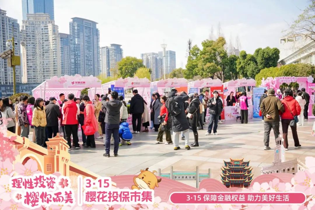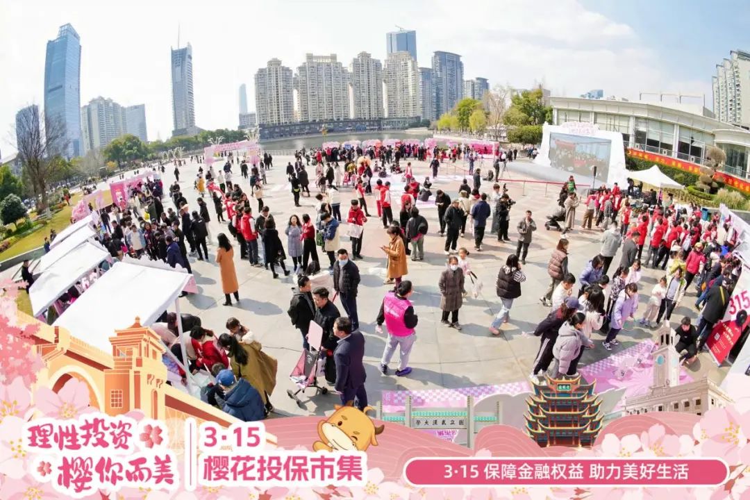 为深入学习贯彻党的二十届三中全会和中央金融工作会议精神,落实资本市场新“国九条”工作要求,践行“金融为民”的工作理念,3月16日下午,在“3·15”国际消费者权益日来临之际,在湖北证监局、江汉区人民政府指导下,湖北省证券期货业协会、长江证券股份有限公司、武汉金融街管理委员会联合主办的“理性投资 ‘樱’你而美”3·15樱花投保市集活动在武汉市江汉区西北湖顺利举行。