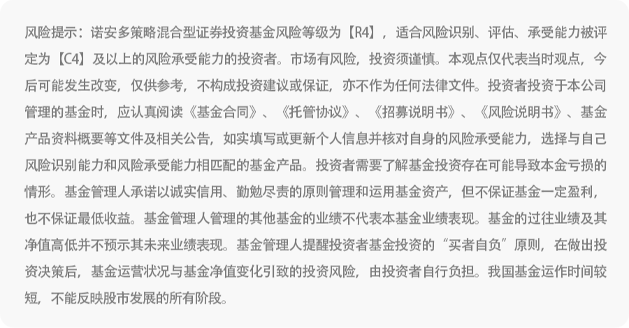 这一年多的时间里,诺安多策略基金净值从1.5左右上涨到2.3左右,获取了较好的绝对和相对收益,给很多投资者带来了不错的投资体验。从一些持有较多的朋友的反馈来看,也帮助他们的家庭在财富上获得了可观的提升,让我感到非常高兴。但也有一些持有人由于对诺安多策略这个产品的投资逻辑不是特别了解,未能把握最佳的买入卖出时机,最后没有赚到该赚的钱,甚至在波动中亏钱,非常可惜。我们今天再跟大家谈谈这个产品背后的投资逻辑。