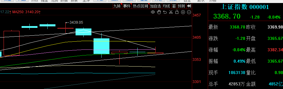 上证今天压力位:3388-3394 支撑位:3340-3364
