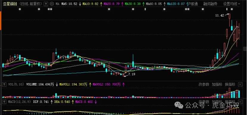 亚星锚链(601890)你不抄我不抄,大航母谁来造。公司是世界锚链行业内最大的、专业化从事船用锚链和海洋系泊链的生产企业,是我国船用锚链和海洋平台系泊链生产和出口基地。有底部反弹的票子趋势都是相对不错的。有几点可以流意,个股放量爬升,出现回调,那么第一个反弹有力,第二个还没跌穿均线,况且这发散的均线,简直发散到心窝窝里了。