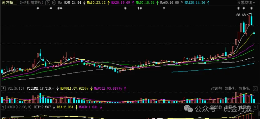 新莱应材(300260)半导体,光刻胶。主力这是虚张声势啊,这么高的位置,进去容易站岗,今天是有分歧的,但是多方占据优势。公司主要是做压力管道组件、各类低功率气动控制阀、流体设备、真空电子洁净设备及其相关零配件等的。首先题材热度是光刻胶,目前大盘弱,个股也跟着弱了。那就先管住手,多看看,看什么呢,当然是看回调深度,成交量的变化,一旦这些都符合入场逻辑,那当然会回来的。