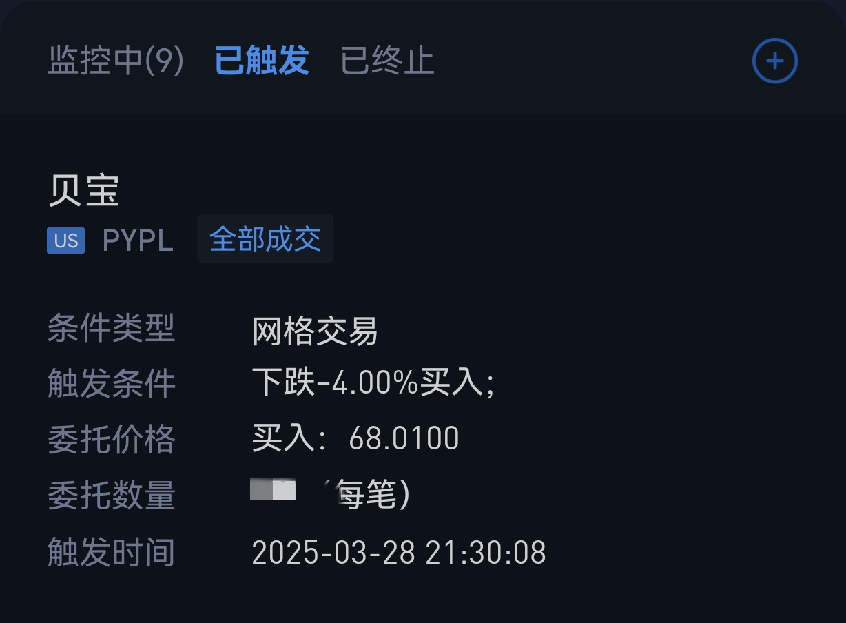 美股开盘了,又是吃面的一晚,刚收到网格交易买入的触发通知: