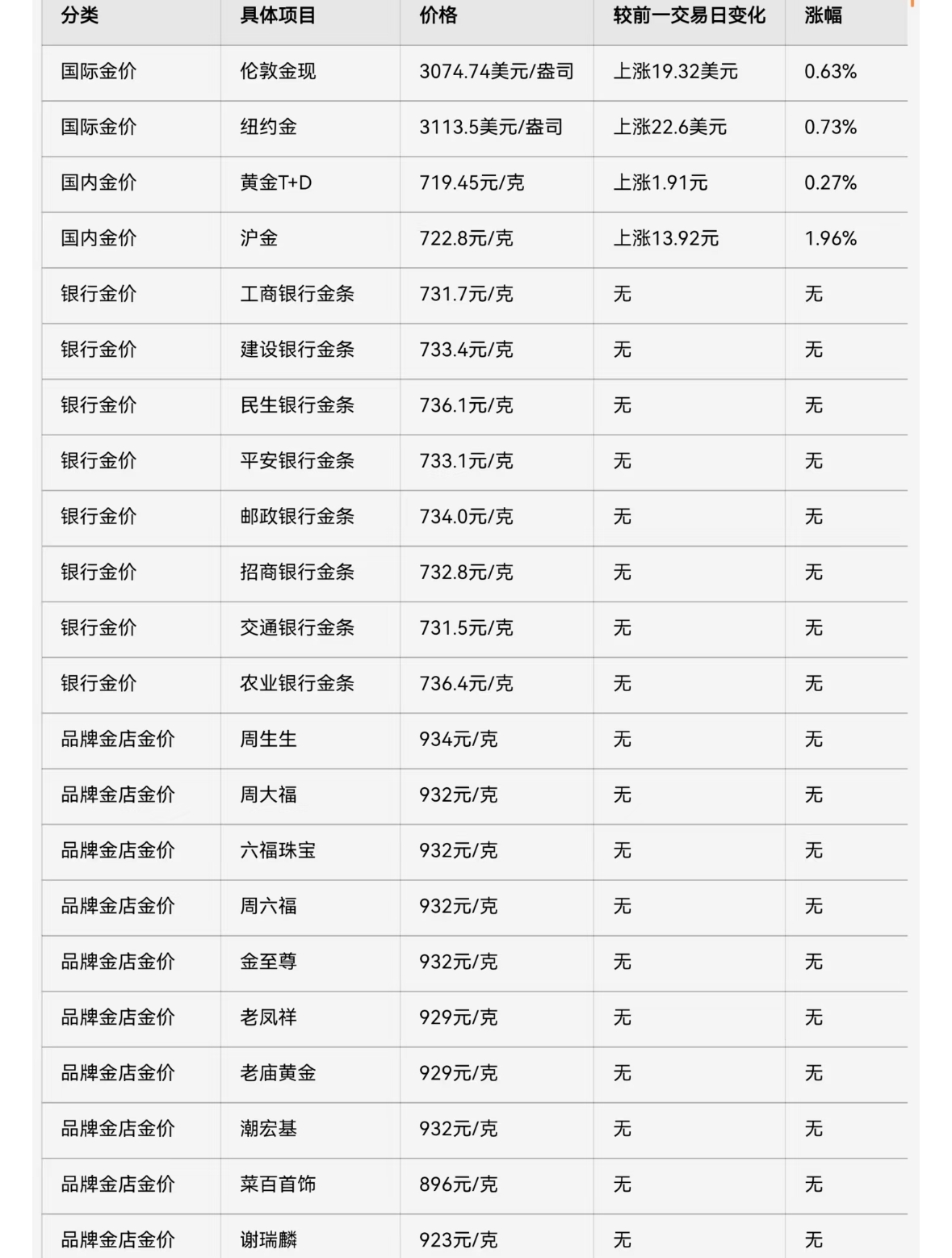 去看了一下今天各珠宝商的金价,900元/g,只能心疼近期结婚的人。
