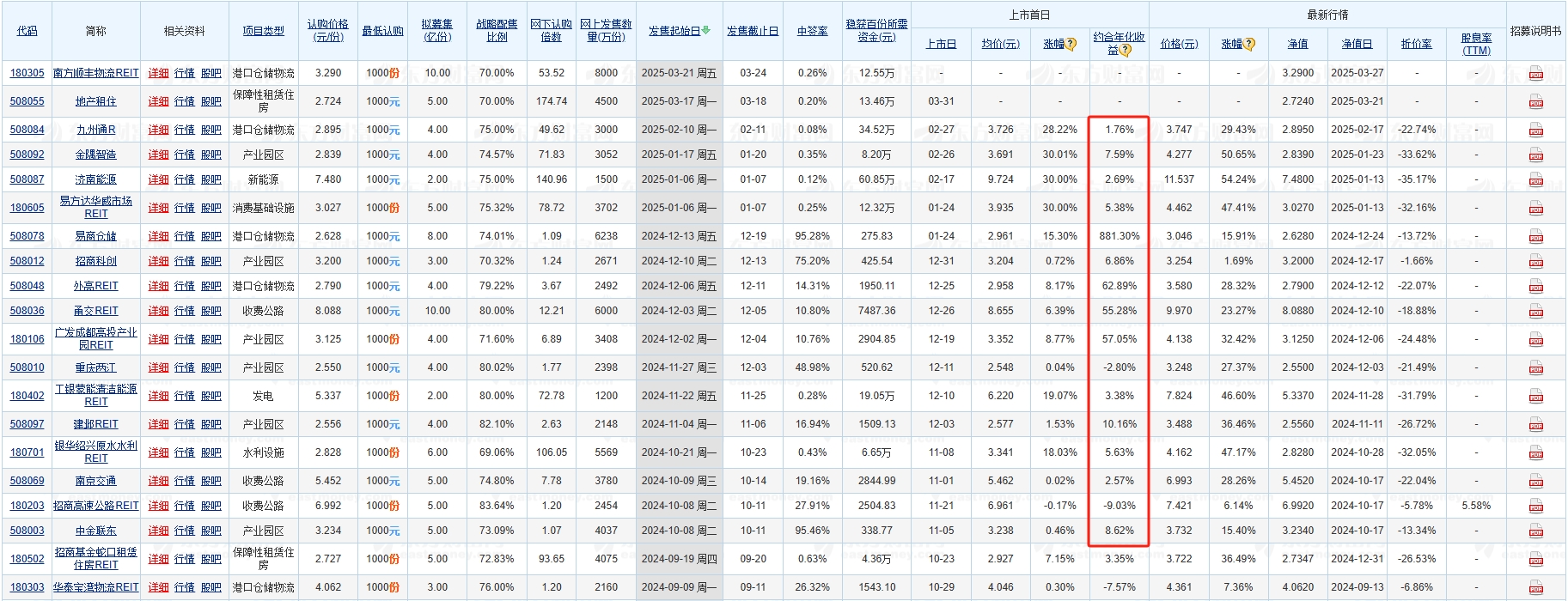 我们可以看下最近上市的REITs基金,REITs基金有所挑选的打新,虽然分配到手的现金绝对值不高,但是年化收益率还可以。