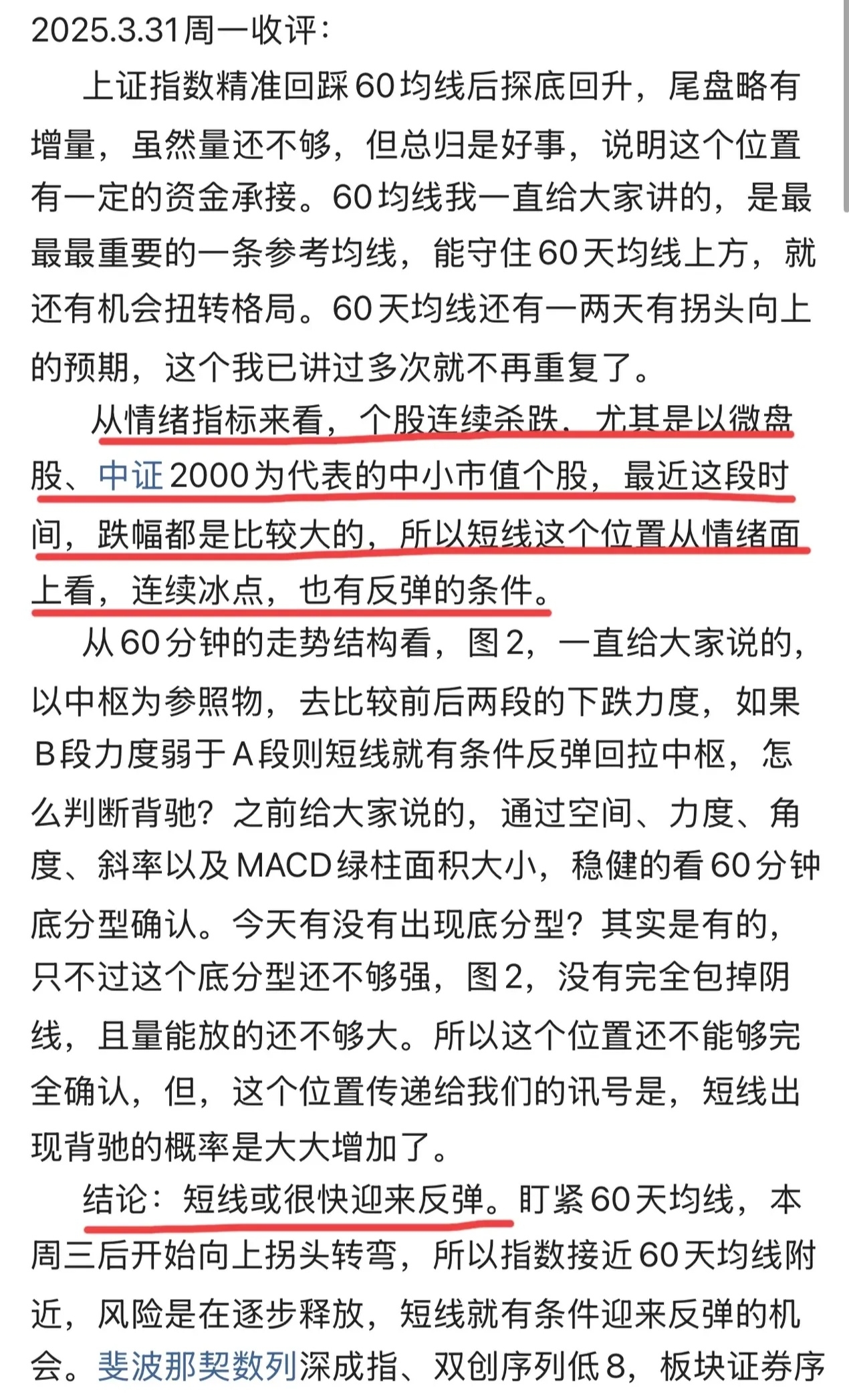 技术面,昨天盘中给大家提示过科创50指数有60分钟底背离,上证指数60分钟有底分型,但并不强,原因还是在于量并没有明显放大,但这个讯号出现了,就意味着短期有止跌反弹需求。还是那句话,下方60均线是很重要的一条参考均线,本周三,明天过后将会开始拐头向上。斐波那契数列,深成指、双创都是序列低9,时间窗口,易变盘,但能不能很快形成转折,看量。早盘的反弹并没有放量,还没有看到主力资金积极进场的讯号,所以短线只能当作是修复反弹来看待,明天重要事件4月2号(恐慌日),所以资金今天为什么没有积极进场,也是情有可原。
