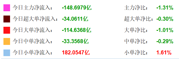 (5)外资/内资:外资数据当日不再公布、改为月度、季度总结。主力资金-148.70亿。流入前三的是化学制药、电力行业、生物制品;净流出前三的是互联网服务、软件开发、汽车零部件。