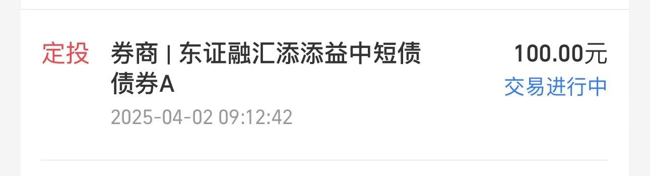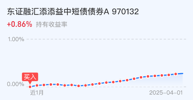 信用债类:$东证融汇添添益中短债A(OTCFUND|970132)$+100。每天定投的这支是7免的短债。稳稳的系列,连涨15天,近一个月收28个蛋,近6个月收105个蛋,近一年213个蛋,各维度业绩稳步向上,挺好,这支是我每天日定投的,串点零花钱,也省心。