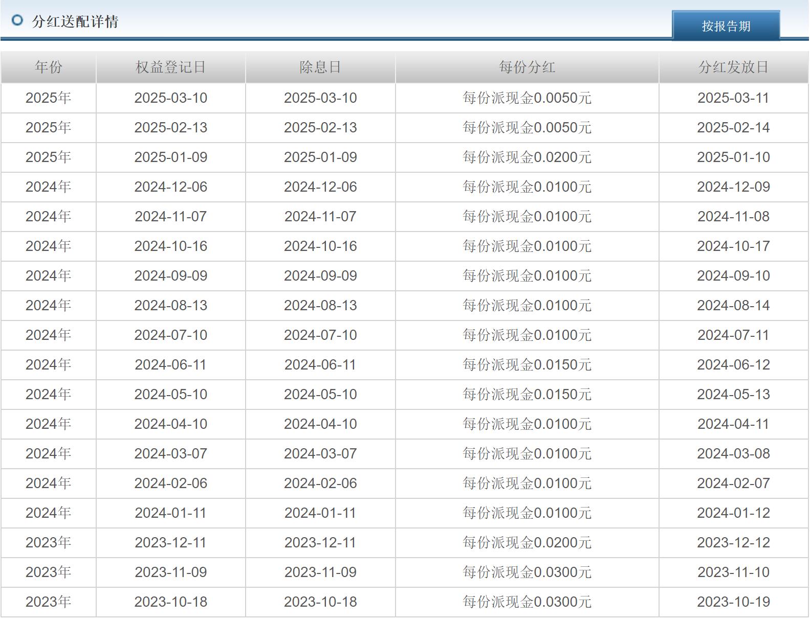 联接基金还有个特点就是每月会定期分红,成立至今已分红18次了,最近这两年差不多每个月都分红,这对于养老投资以及收息佬非常友好,有种每月“领工资”的感觉。