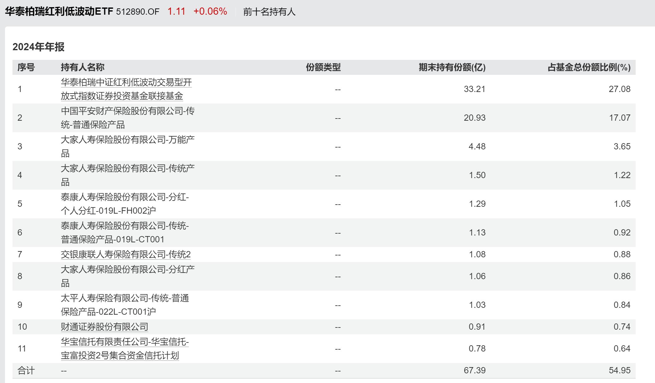 以上十大持有人的第一位,是红利低波ETF(512890)对应的场外联接基金:A类007466/C类007467/Y类022951,因为很多人是通过场外来配置基金的。