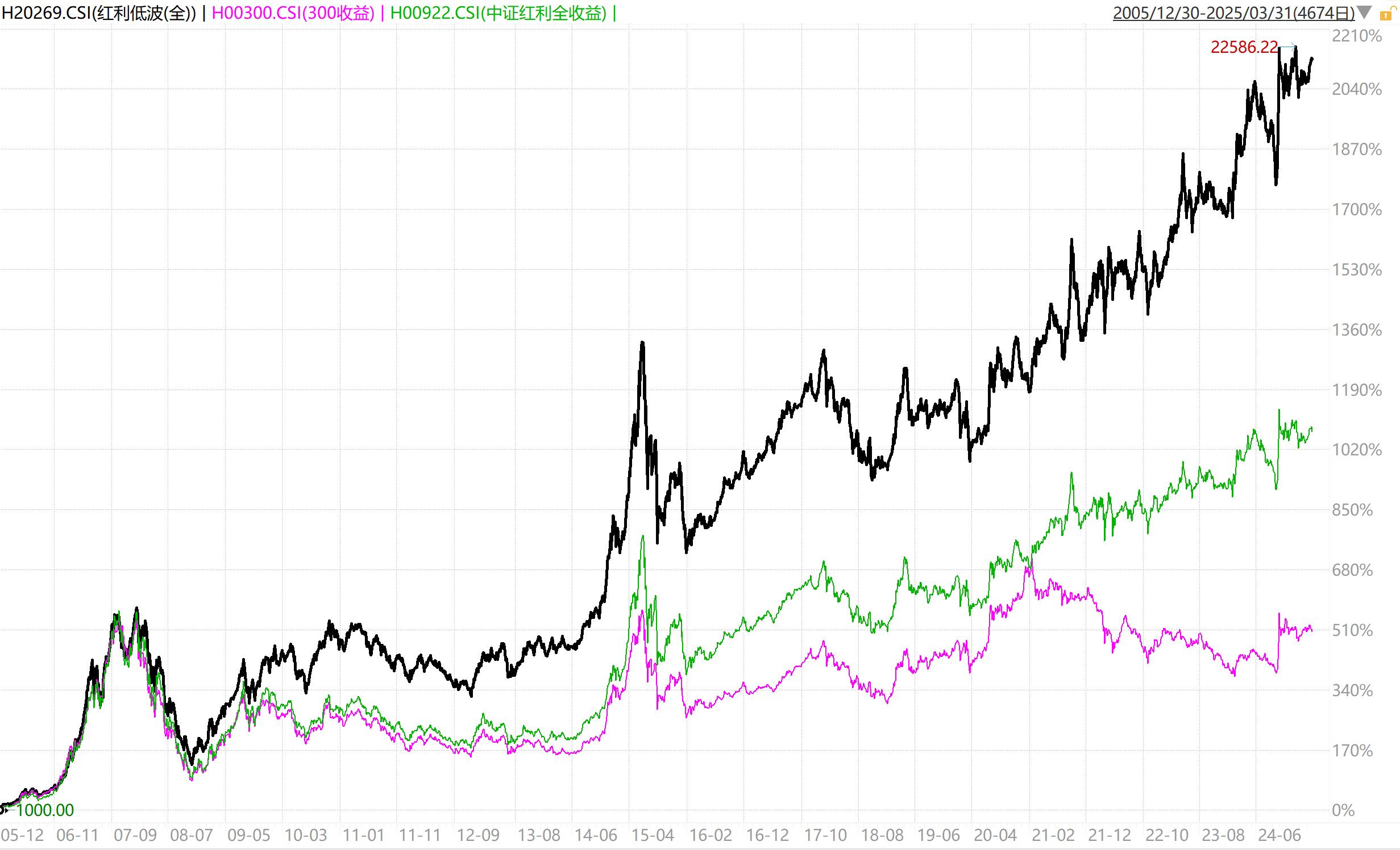 下图是红利低波全收益,中证红利全收益和沪深300全收益的走势对比。