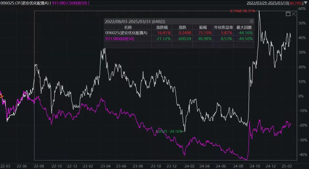 诺安优化配置关注芯片国产自主可控“卡脖子”领域,截至2025年3月31日在刘慧影任内实现了16.41%的回报,跑赢科技50指数37.53%。