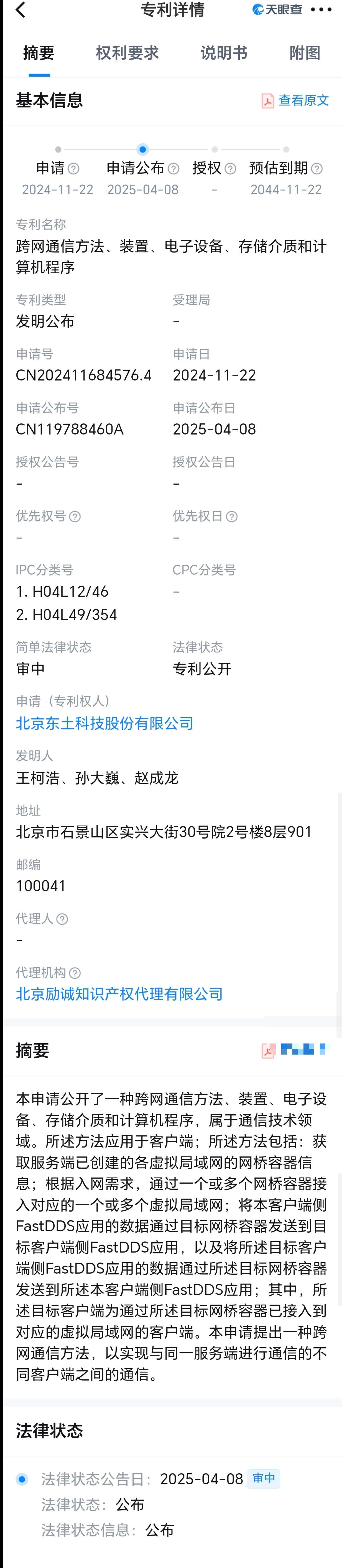 东土科技新申请了一个专利“跨网通信方法、装置、电子设备、存储介质和计算机程序”,其摘要述本申请公开了一种跨网通信方法、装置、电子设备、存储介质和计算机程序,属于通信技术领域。所述方法应用于客户端;所述方法包括:获取服务端已创建的各虚拟局域网的网桥容器信息;根据入网需求,通过一个或多个网桥容器接入对应的一个或多个虚拟局域网;将本客户端侧FastDDS应用的数据通过目标网桥容器发送到目标客户端侧FastDDS应用,以及将所述目标客户端侧FastDDS应用的数据通过所述目标网桥容器发送到所述本客户端侧FastDDS 应用;其中,所述目标客户端为通过所述目标网桥容器已接入到对应的虚拟局域网的客户端。本申请提出一种跨网通信方法,以实现与同一服务端进行通信的不同客户端之间的通信。