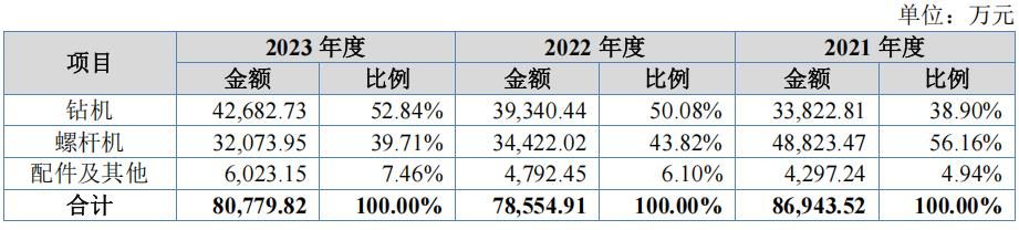 志高机械是一家为下游客户提供凿岩工程与空气动力专业性综合解决方案的高新技术企业,专注于提供节能、环保、安全、高效的钻机、螺杆机产品,主要产品为“志高掘进”、“ZEGA”系列钻机、螺杆机及相关配件,产品广泛应用于矿山开采、工程建设、装备制造、石化化工、纺织服装、食品饮料、医药生产等领域。2021年-2023年,公司的营业收入分别为8.809亿元、7.95亿元和8.404亿元,净利润分别为6694.29万元、8898.74万元和1.035亿元。