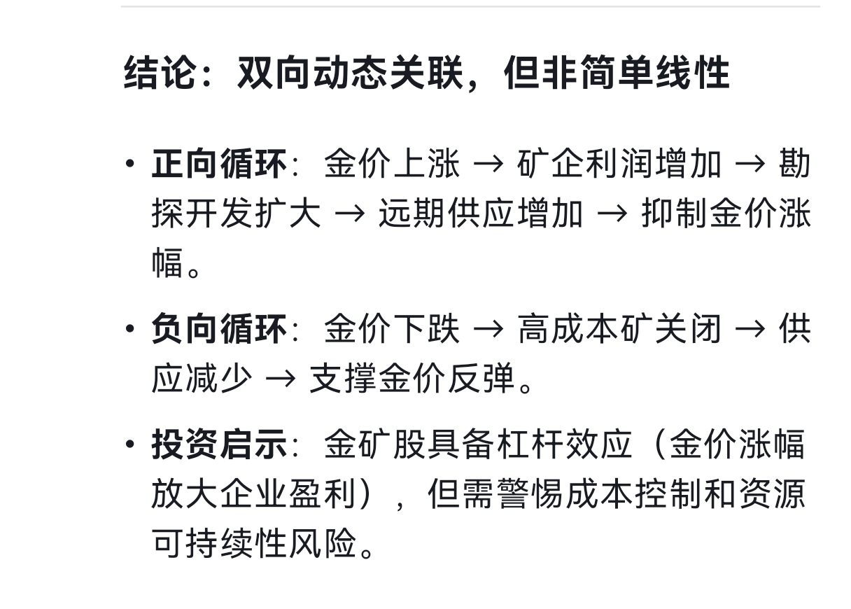 金矿和金价的关系是正相关,金矿价值是金价的函数,金矿价值会放大金价的变化,所以金矿股对于金价来说具备杠杆效应,简言之,金矿股的涨跌幅大于金价,这就是我要的结论!
