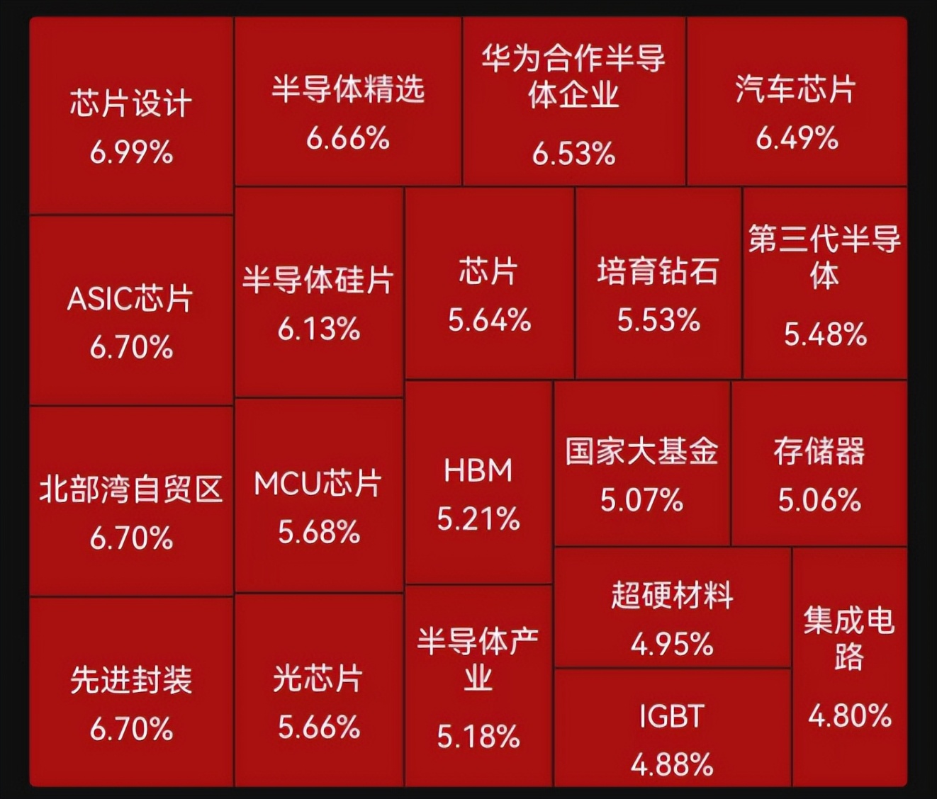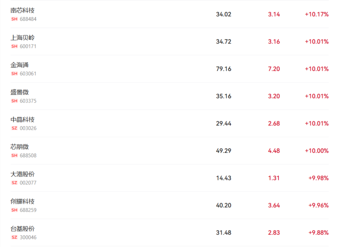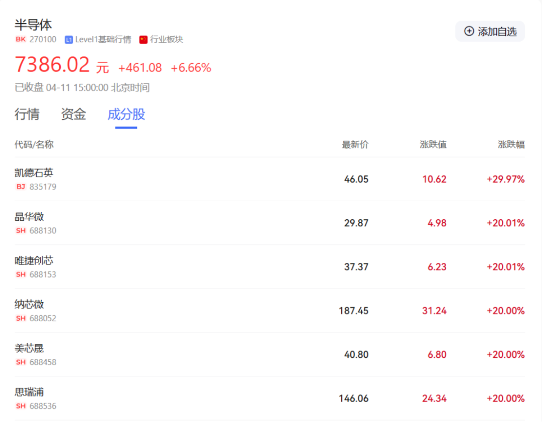 截至4月11日收盘,半导体芯片概念股全线爆发。