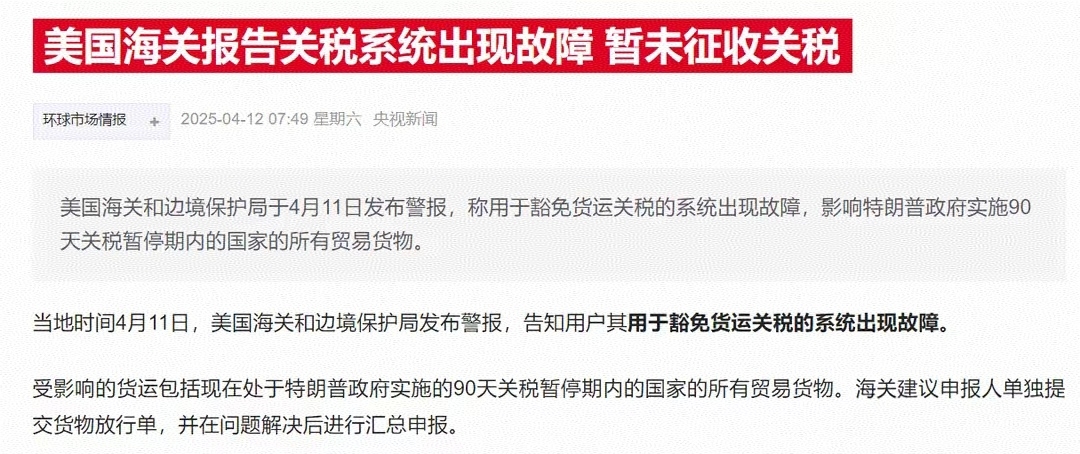 1、这个时候关税系统故障,到底是真故障还是一场骗局?关税又有变数?
