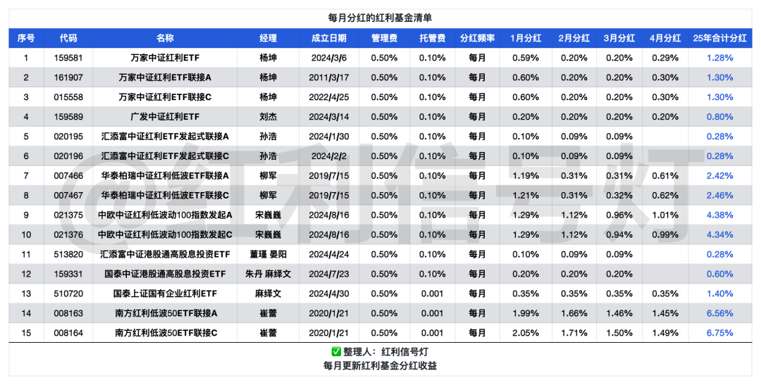 红利信号灯是专注“高分红+低费率”红利基金的,每月都会更新每月的红利基金分红收益。