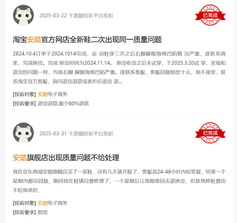 “重营销轻研发”,安踏产品质量投诉也渐多。