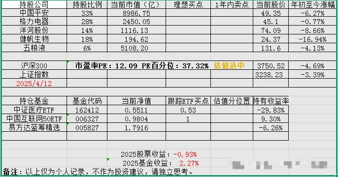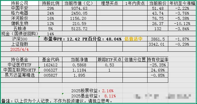 目前持仓 中国平安29% 格力24% 洋河16% 健帆12% 五粮液5%