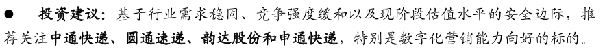 那么,“三通一达”中有没有值得青睐的呢?我引用今年某券商在快递行业研究中发表的观点: