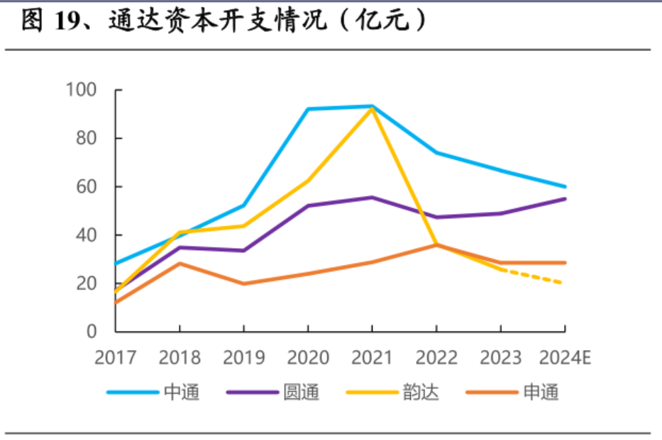 以上两点,第一点摊薄了中通的毛利率和净利率,第二点说明了摊薄后,中通仍具有优势的原因,这两点就解释了为什么中通的净利率“一骑绝尘”,其他三家“相形见绌”的原因。