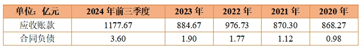 而工业富联在这两项数据上的差异巨大,2020-2024年前三季度工业富联应收账款平均值为900亿左右;而同期合同账款平均不足2亿。