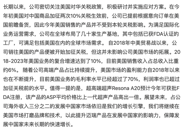 Q:1、所长迈瑞医疗在美业务如何,受关税影响大吗?
