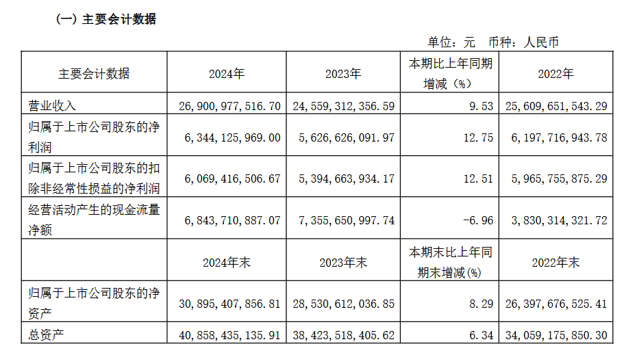 4月2日晚,海天味业发布了2024年年度报告。2024年公司实现营业收入269.01亿元,同比增长9.53%。实现净利润63.44亿元,同比增长12.75%。实现扣非净利润60.69亿元,同比增长12.51%。这是自2022年和2023年净利润持续下滑后重回增长之路的一年。gz同铭g种H。
