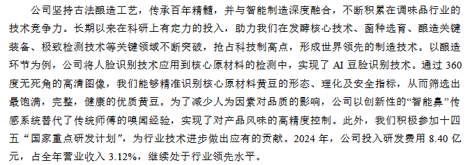 另外,这里有个有意思的数据,如下表。酱油大家按照往常的理解是个传统行业,科技属性很弱,谁都能干。其实不然,我们可以看到,海天704名研发人员,占比7.81%。其中本科以上学历占比92%,研究生以上学历占比37%。