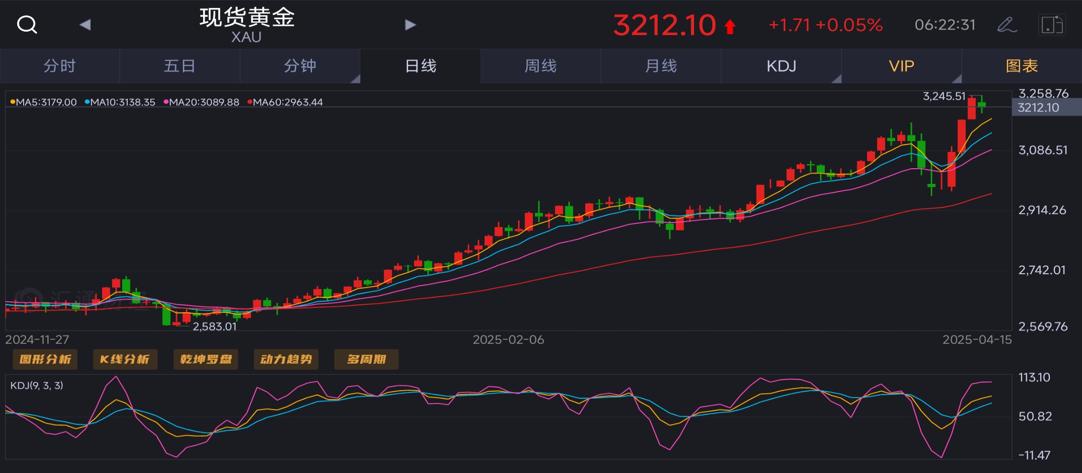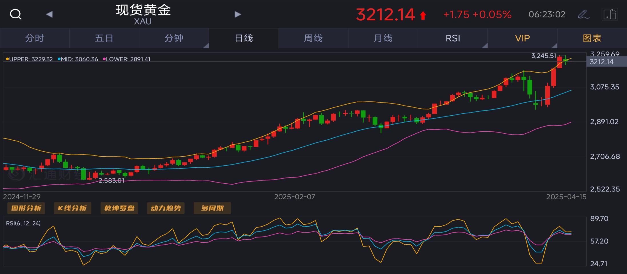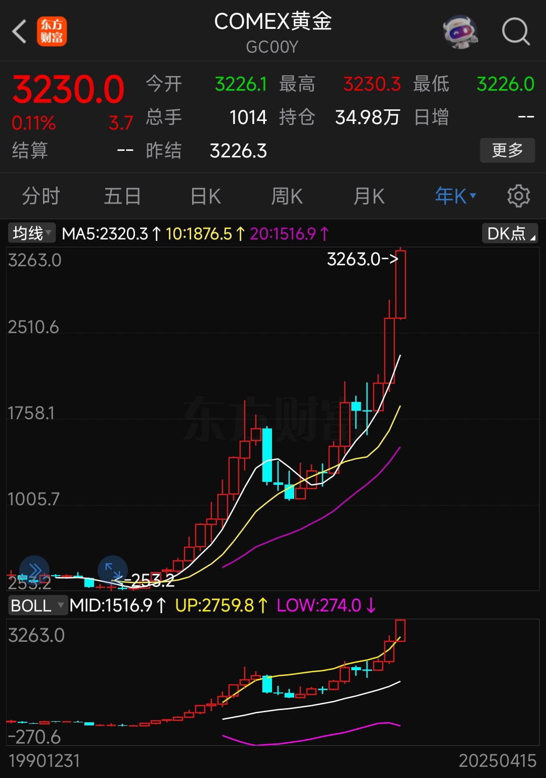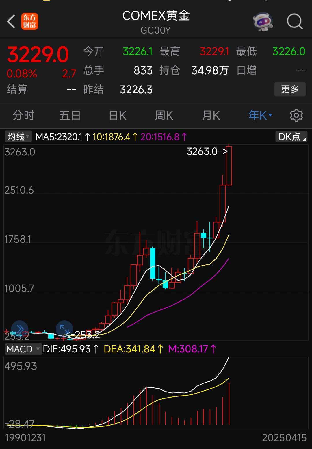 毫无疑问,黄金是这一次金融暴风雨中的最大赢家。现货黄金,从2024年的收盘价2625.76点,连续4个月上涨,目前的最高点是3245.51点,今年的累计涨幅达到23.6%,而今天只是2025年4月15日,后面还有8个月的时间。