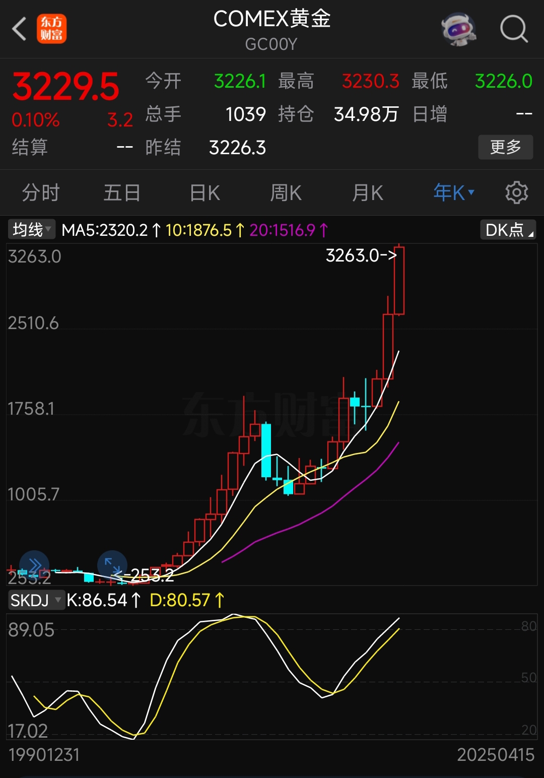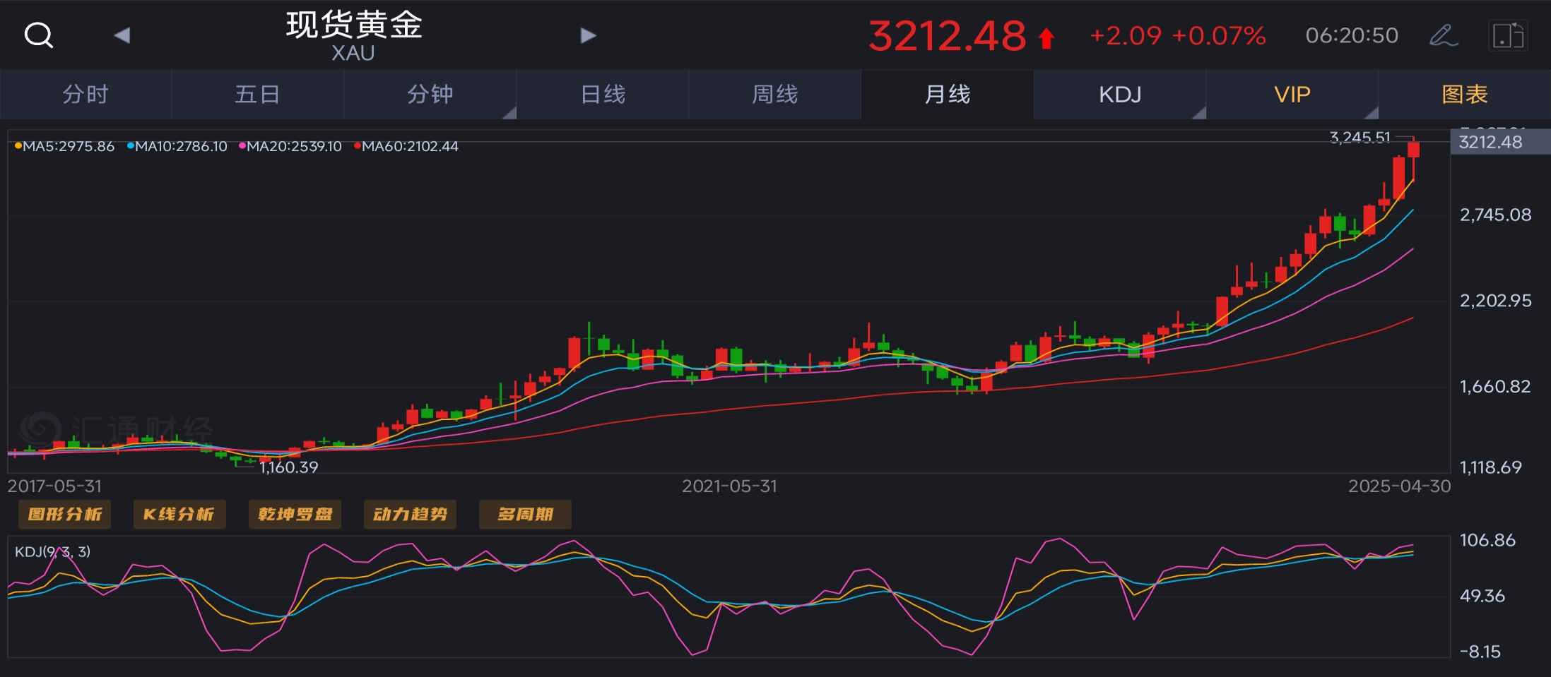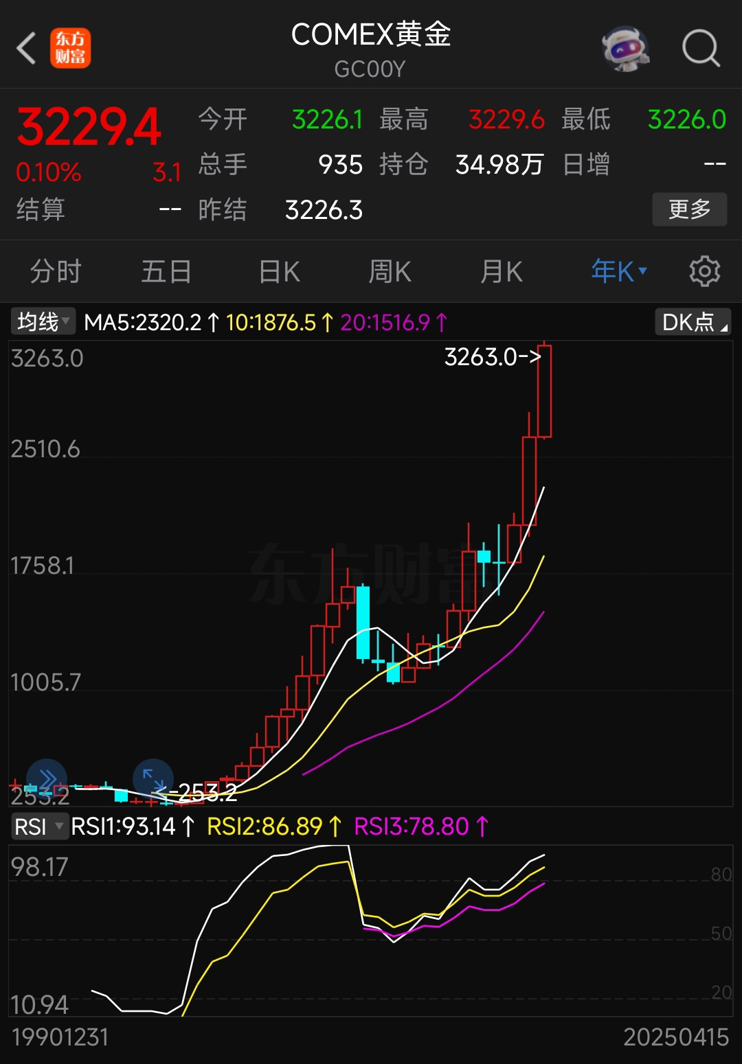 毫无疑问,黄金是这一次金融暴风雨中的最大赢家。现货黄金,从2024年的收盘价2625.76点,连续4个月上涨,目前的最高点是3245.51点,今年的累计涨幅达到23.6%,而今天只是2025年4月15日,后面还有8个月的时间。