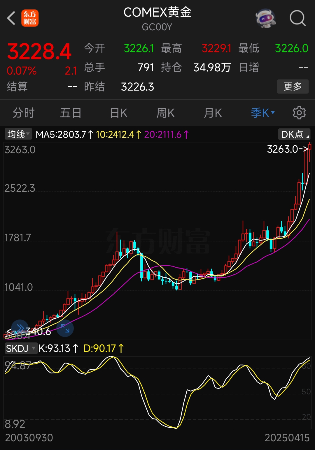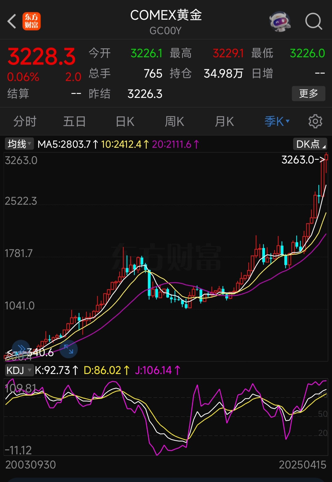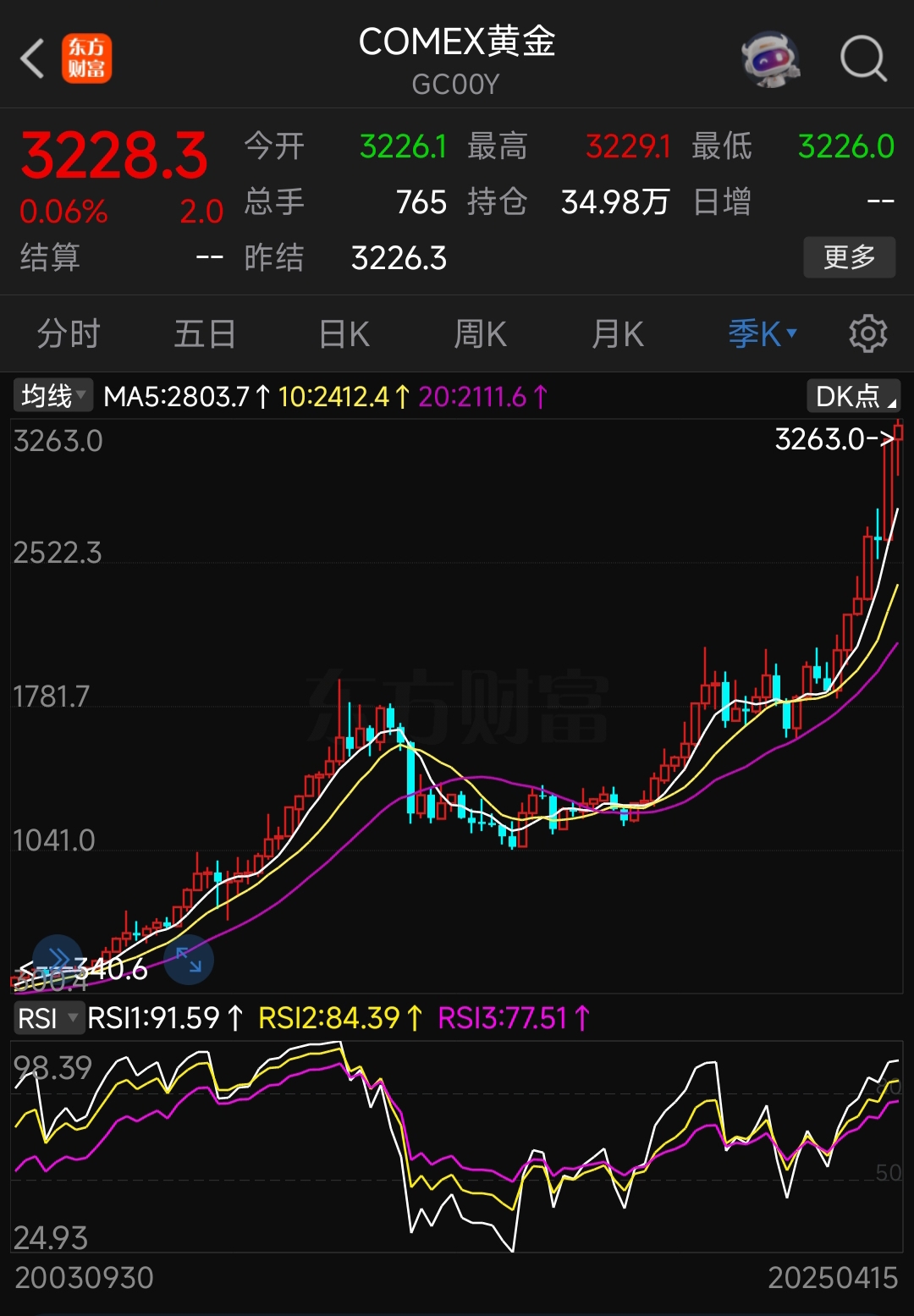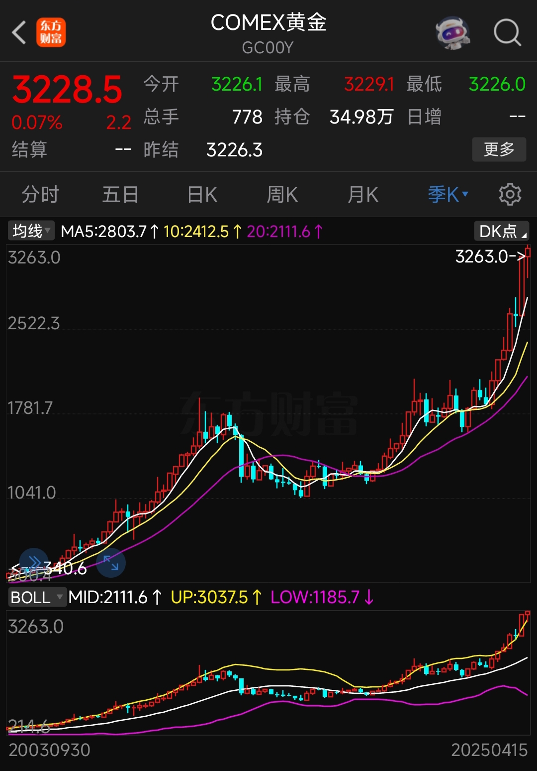 毫无疑问,黄金是这一次金融暴风雨中的最大赢家。现货黄金,从2024年的收盘价2625.76点,连续4个月上涨,目前的最高点是3245.51点,今年的累计涨幅达到23.6%,而今天只是2025年4月15日,后面还有8个月的时间。