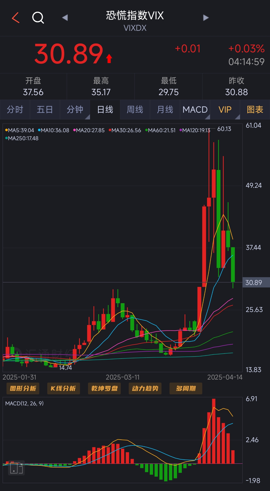 这个恐慌指数VIX,貌似情绪趋向稳定。