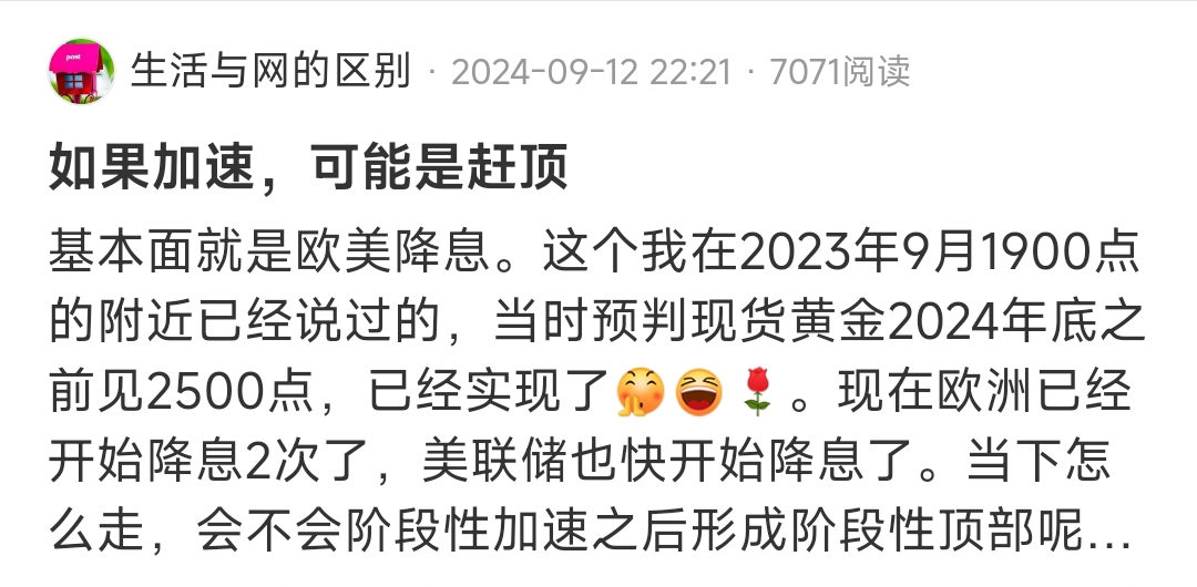 。第5点,我预期了美联储的降息影响。第6点,我预判了这个上涨过程有点长。