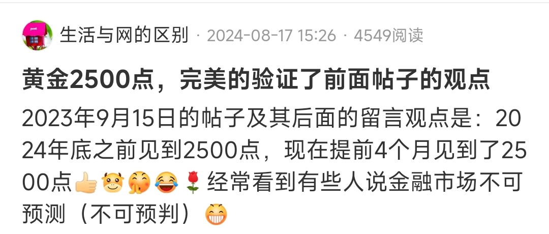 。既然是对未来做出预判,有对有错才是真实的,没有什么大不了的,无论对错,都是有利于我后面回头进行回顾、总结、提高,所以说我写帖子并不全是为了别人,主要是为了我自己(记录、回顾、总结、提高),顺便可能有益于一些有缘分的人