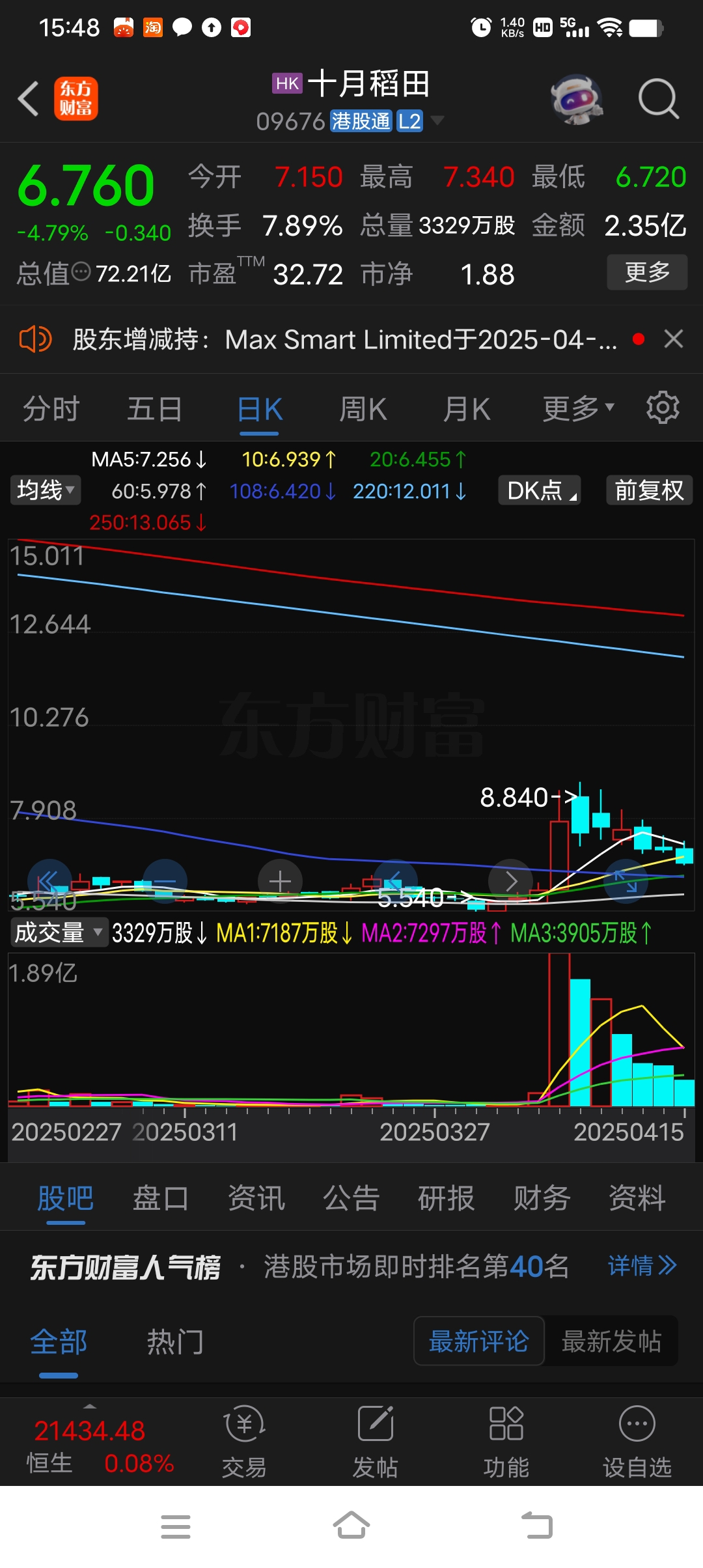 消息面上,香港联交所最新资料显示,4月14日,刘强东减持十月稻田110.01万股,每股作价8.0172港元,总金额约881.97万港元。减持后最新持股数目约为5398.20万股,最新持股比例为12.79%。值得注意的是,刘强东本月内三次减持十月稻田,合计减持6.48%股权,涉资2.17亿港元。