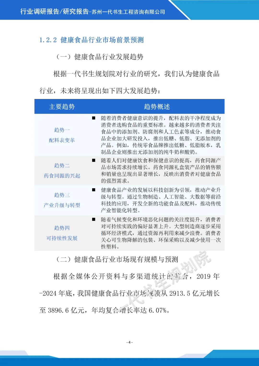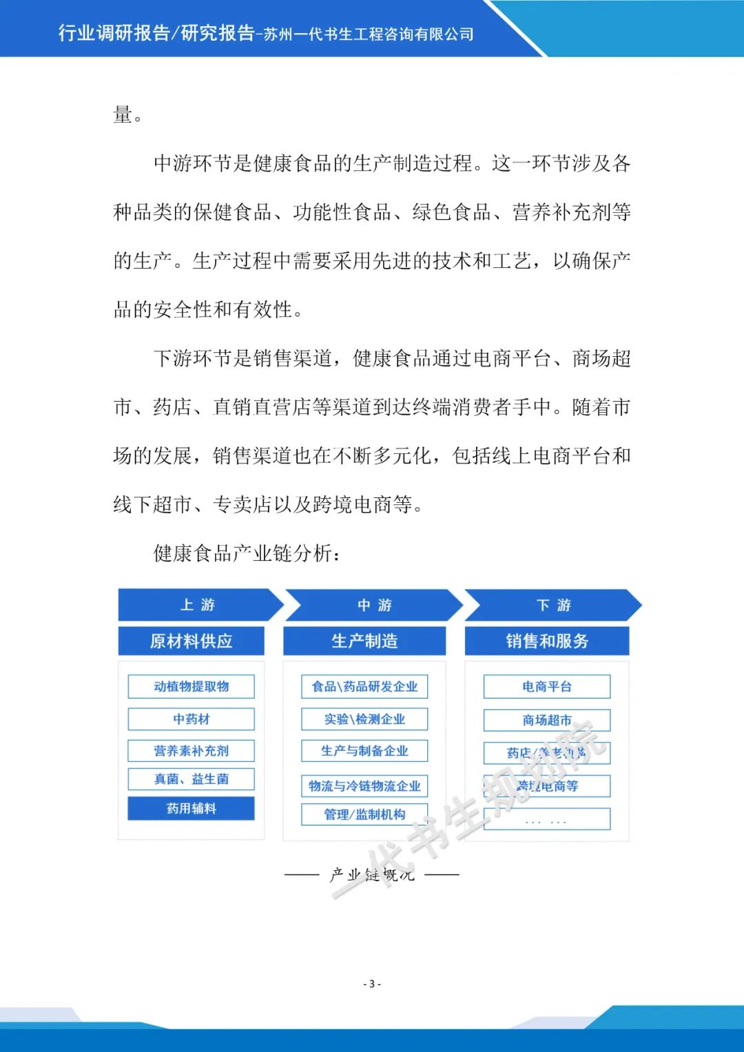 因素三:政策支持与健康产业发展规划。政府对健康产业的支持力度不断加大,出台了一系列鼓励健康食品产业发展的政策措施,为健康食品行业提供了良好的发展环境。