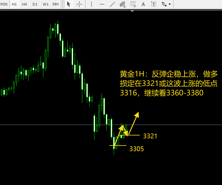 国际金价本周调整结束,再次开启多头反攻上涨,关注两个位置支撑3321和3316,守住支撑位置,金价突破企稳3340后继续冲击3360-3380美元;