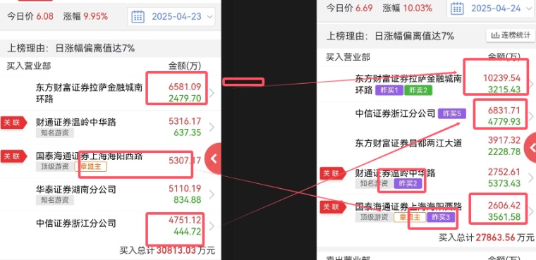 而最为明显的就是:六一路和呼家楼的出手,而昨日核心重点我们讲了,下一个核心抱团,可能从红宝丽里做切换,而六一路的动向就是关键了!昨日六一路开始试错,而今日开始加仓就说明了什么呢? 一、六一路+章盟主:2亿加仓!