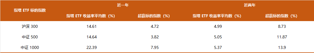 从业绩表现来看,近年来指增ETF相对标的指数的超额收益比较明显。