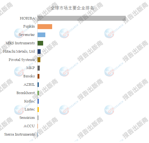 全球范围内,半导体质量流量控制器主要生产商包括HORIBA,Fujikin和MKS Instruments等,其中前五大厂商占有大约85%的市场份额。