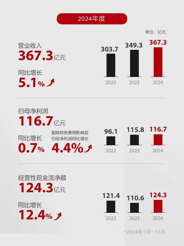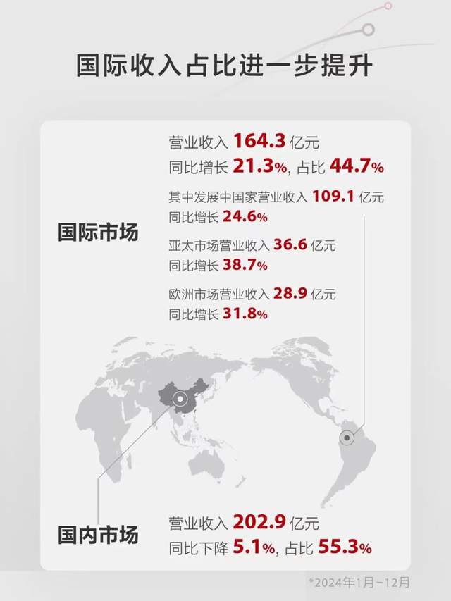 2024年度,由于国内市场的各种客观原因,迈瑞医疗国内业务同比下降5.10%,但受益于国际业务高增长,公司整体业绩仍保持稳健向上。