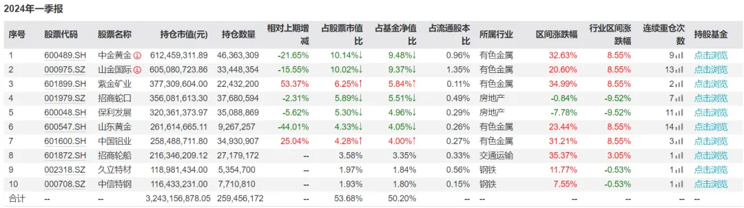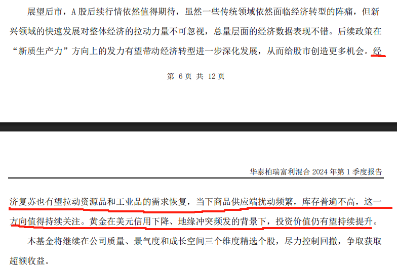 2024年第一季度董辰持仓集中在黄金、铝业、钢铁、房地产。认为经济复苏有望拉动资源品和工业品的需求恢复,商品供应端扰动频繁,库存普遍不高,这一方向值得持续关注。黄金在美元信用下降、地缘冲突频发的背景下,投资价值仍有望持续提升。