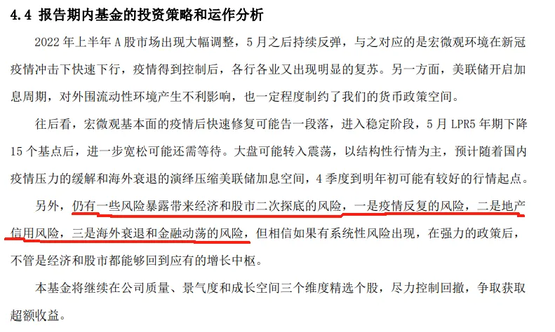 2022年第二季度和第三季度降低股票占比。仍有一些风险暴露带来经济和股市二次探底的风险,一是疫情反复的风险,二是地产信用风险,三是海外衰退和金融动荡的风险。