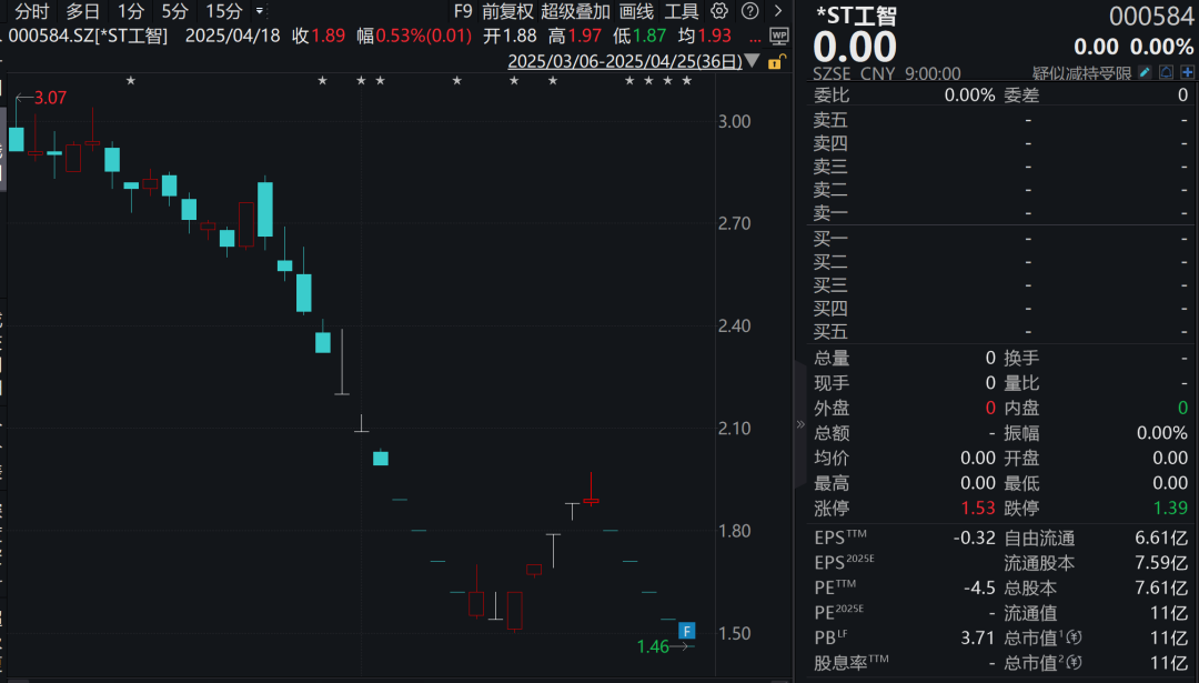 *ST工智拟被终止上市 *ST工智全称江苏哈工智能机器人股份有限公司。公司主要从事智能制造业务,目前具体涵盖高端智能装备制造、工业机器人本体的制造和销售两个子板块。 财报显示,在工业机器人应用方面,*ST工智专业为汽车、汽车零部件、新能源工业、数字化工厂、机械装备、医疗设备等行业客户提供先进的智能化柔性生产线,是高端智能自动化装备系统集成供应商。 *ST工智近年来经营状况不佳。受行业竞争激烈,毛利率下降,计提应收款项减值、商誉减值及投资亏损等因素影响,2021年以来,*ST工智已连续4年亏损。而导致公司被终止上市的是其财务会计报告连续被出具无法表示意见审计报告。 《终止上市事先告知书》显示,因2023年度财务会计报告被出具无法表示意见的审计报告,*ST工智股票交易自2024年5月6日起被实施退市风险警示。 2025年4月28日,*ST工智披露的股票交易被实施退市风险警示后的首个年度报告显示,公司2024年度财务会计报告被出具无法表示意见的审计报告,财务报告内部控制被出具否定意见的审计报告。 *ST工智因触及深交所《股票上市规则(2025年修订)》第9.3.12条第一款第(三)项和第(五)项规定的股票终止上市情形,深交所拟决定终止公司股票上市交易。 *ST工智近期股价波动明显。4月14日至17日,*ST工智连续4个交易日涨停,4月21日至25日,*ST工智又连续5个交易日跌停。在4月27日晚间披露2024年年报披露后,其股票已自4月28日开始起停牌。